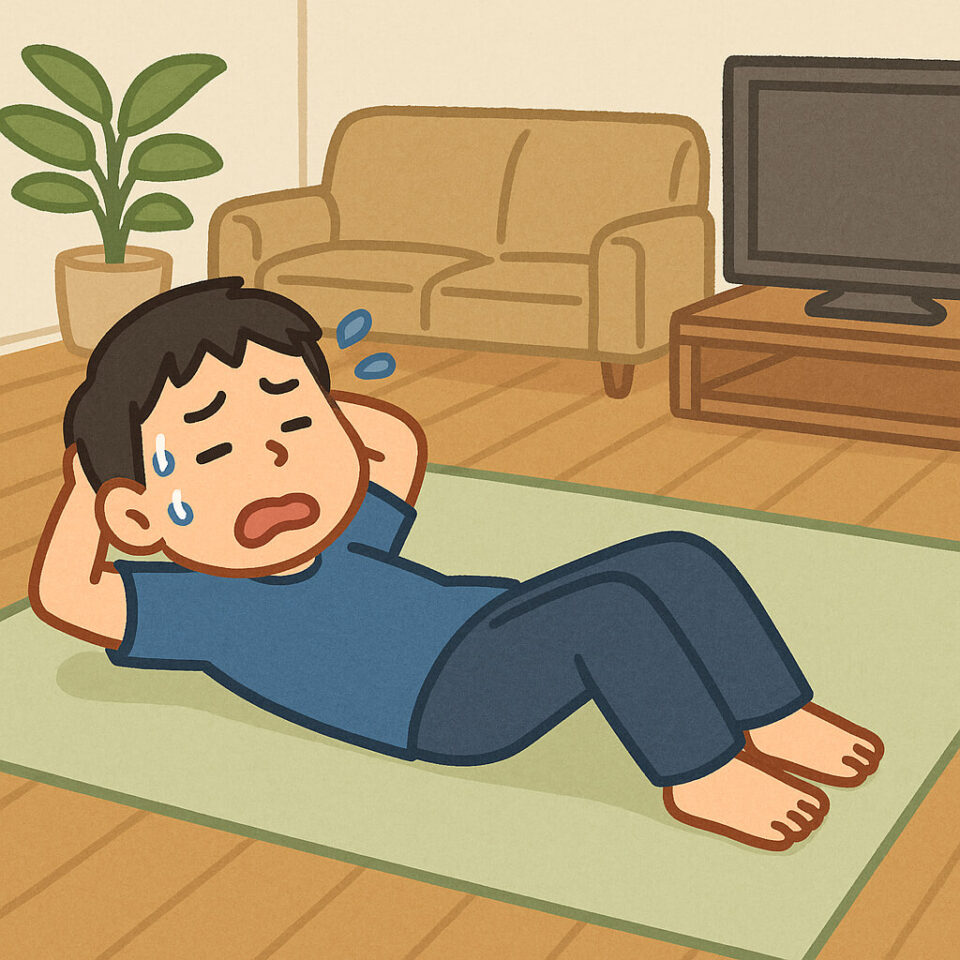 このまま腹筋をすると、腰の関節がうまく動かない分、首や背中の筋肉ばかりが働いてしまうため、